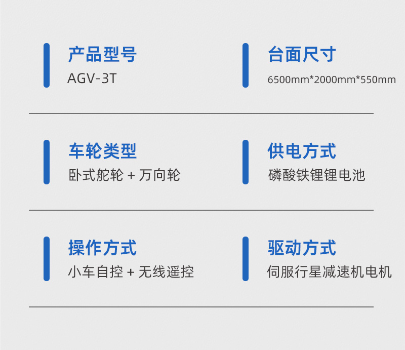 PLC控制系統(tǒng)通過無線AP可對AGV小車進行遠程操控,通過站點控制臺按鈕呼叫車輛運行,鋰電池供電滿載運行時間不低于2小時,配備自動充電樁,按照程序設(shè)定低于電量設(shè)定值后自行前往充電樁自動充電,支持2小時快充充滿自動斷電。輪系配備臥式驅(qū)動輪搭配萬向輪可全向運行。伺服電機伺服行星減速機***控制車輪轉(zhuǎn)向,實現(xiàn)前進后退 左轉(zhuǎn)右轉(zhuǎn) 縱橫移動 原地旋轉(zhuǎn)等運動控制,差速轉(zhuǎn)向的轉(zhuǎn)彎方式噪音小不易損傷地面,安全裝置配置雷達檢測自動避障,聲光報警、急停開關(guān),車體四周機械防撞,安全性直接拉滿,確保AGV小車平穩(wěn)安全運輸作業(yè)。