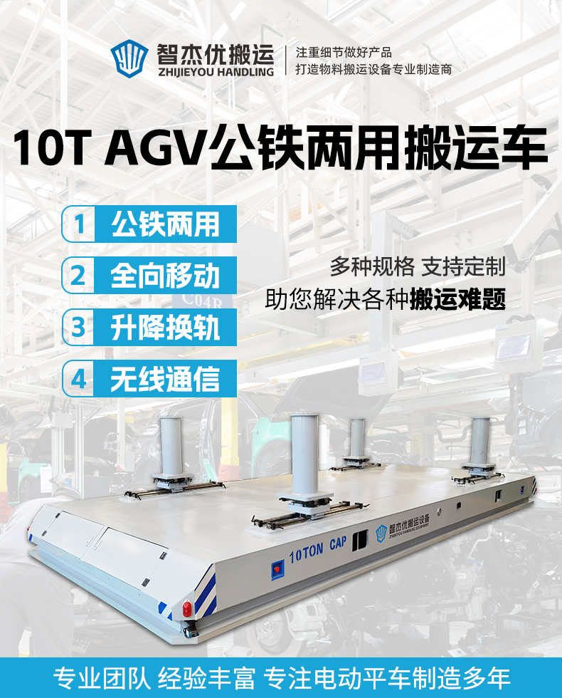 10噸級(jí)磁導(dǎo)航AGV公鐵兩用搬運(yùn)車