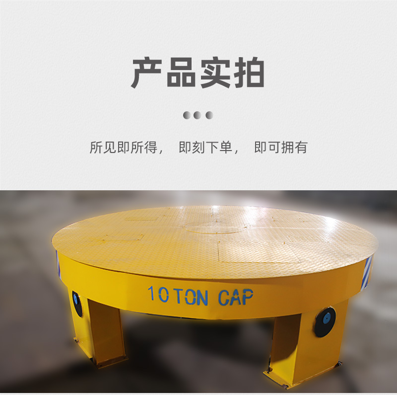 描   述: 這是一臺重型電動轉(zhuǎn)盤,箱梁結(jié)構(gòu)支撐可承重15噸。多組交流電機驅(qū)動,啟動力足,無線遙控轉(zhuǎn)盤360度旋轉(zhuǎn),操作簡單,方便靈活;主要用于大型設(shè)備裝配、清洗等原地旋轉(zhuǎn)作業(yè)。