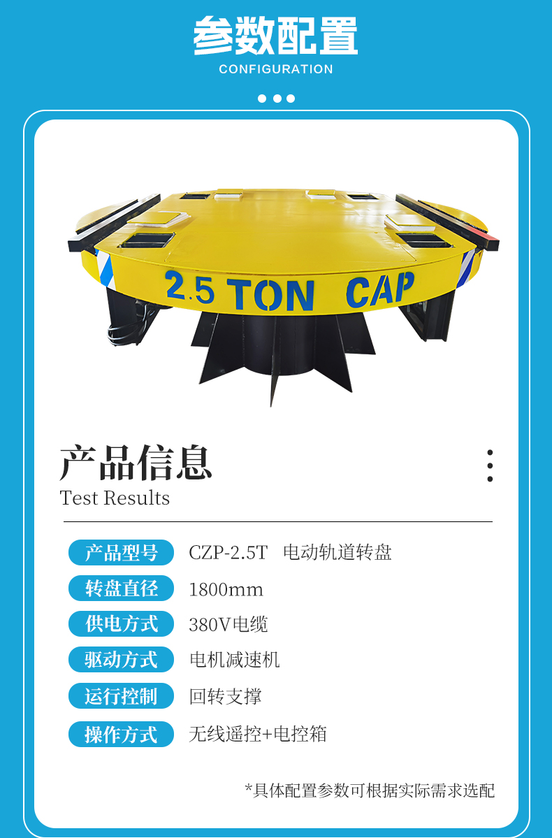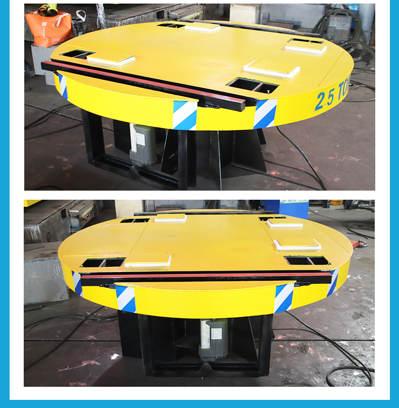 描   述: 平車換向?qū)S迷O(shè)備軌道電動轉(zhuǎn)盤直徑1.8米額定載重2.5噸,主要用于軌道平車的90度換向使用,轉(zhuǎn)盤安裝在基礎(chǔ)地坑內(nèi),由車架、旋轉(zhuǎn)平臺和控制箱等組成,可以實現(xiàn)360度旋轉(zhuǎn),通過電纜供電給驅(qū)動電機(jī),驅(qū)動轉(zhuǎn)盤進(jìn)行原地旋轉(zhuǎn)滿足連續(xù)作業(yè)使用需求,無線遙控操作轉(zhuǎn)盤正轉(zhuǎn)反轉(zhuǎn)加減速,PLC控制系統(tǒng)***控制轉(zhuǎn)盤轉(zhuǎn)向,與地面垂直軌道對接精度高,可以實現(xiàn)***定位,從而使軌道車可以沿垂直軌道運(yùn)行,實現(xiàn)90度轉(zhuǎn)彎,配置雙組車