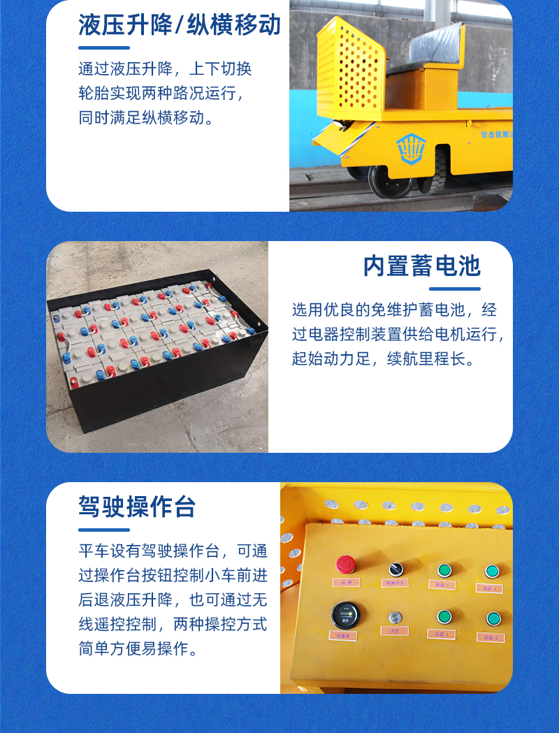 描   述: 公鐵兩用電動平車,公路鐵路都能跑!這種車輛通過一套驅(qū)動系統(tǒng)實現(xiàn)公路和鐵路兩種狀態(tài)的轉(zhuǎn)換!2組車輪一鍵切換,兩種路況輕松應(yīng)對,無線遙控操作按鈕兩種操控方式簡單方便,讓你的車間運輸效率大大提高!