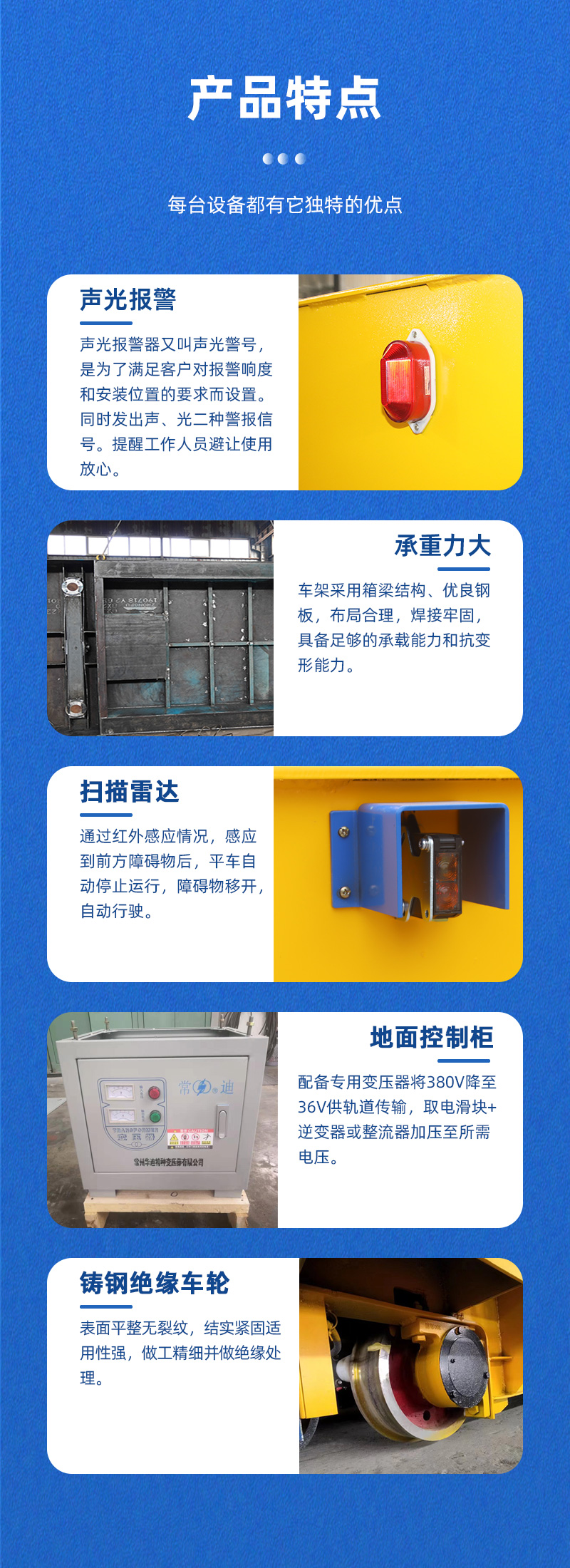 公司保障:電動平車、軌道平車的承重安全系數(shù)不低于60%