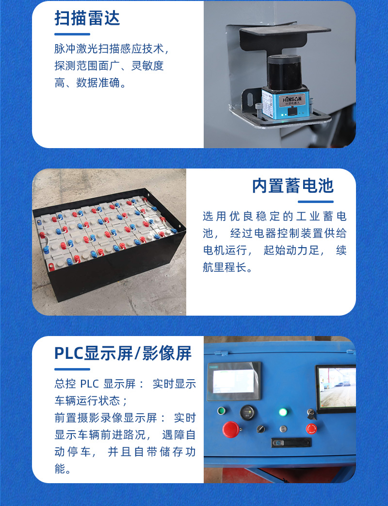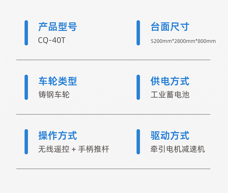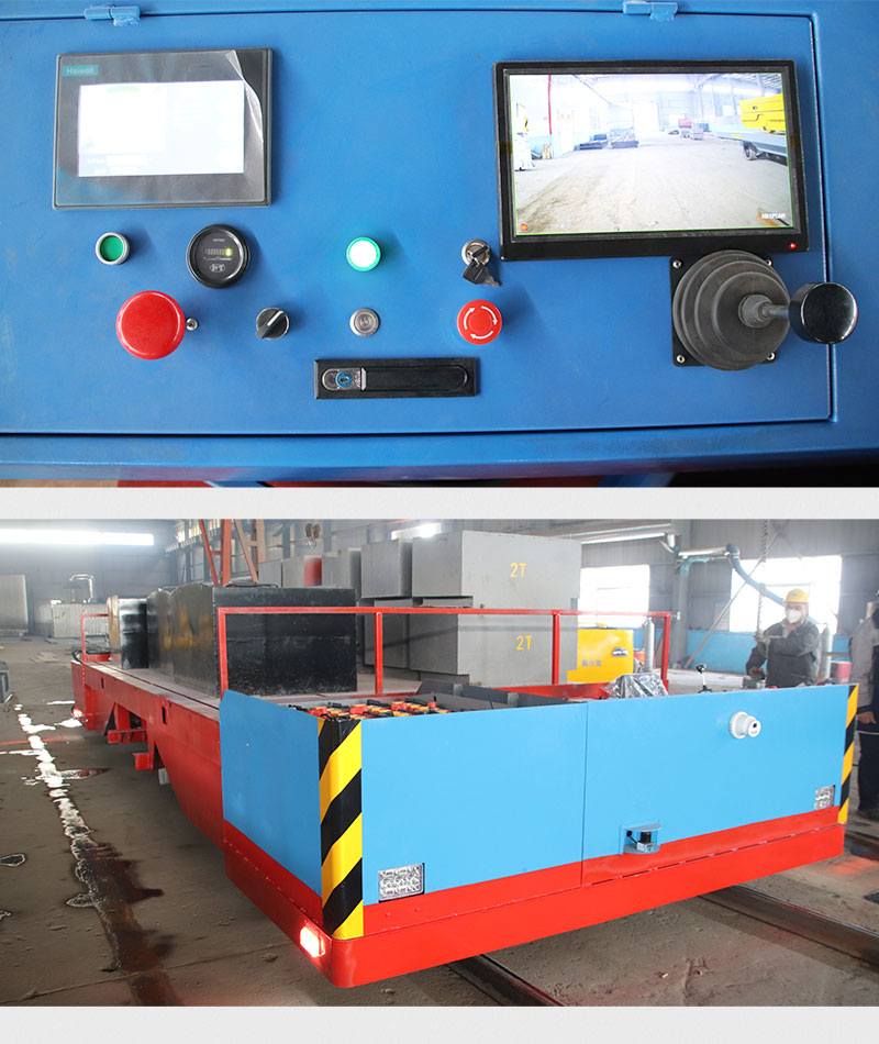 描   述: 軌道牽引電動平車,該車即可為無動力車輛提供牽引動力,自身也可搬運(yùn)重物使用,整車長5.2米寬2.8米高0.8米載重40噸,平車前端設(shè)有駕駛位,可人工駕駛推桿操控平車前進(jìn)后退。加減速,也可遠(yuǎn)距離無線遙控作業(yè),平車配備PLC顯示屏,實(shí)時顯示車輛狀態(tài)信息,同時配備前置射影像視屏,實(shí)時顯示前方路況實(shí)況,避免碰撞,示廓燈、攝像頭、激光雷達(dá)270度自動掃描避障,平車后方設(shè)有牽引裝置,滿足牽引作業(yè)需求。