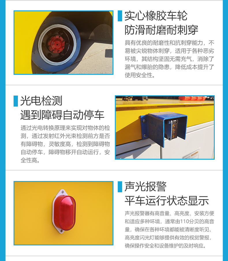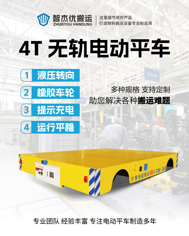 描   述: 智杰優(yōu)搬運(yùn)為金屬制造業(yè)定制的液壓轉(zhuǎn)向無軌電動平板車,平臺長3米寬2.3米額定載重4噸,主要用于金屬原材料的轉(zhuǎn)運(yùn)作業(yè),車架箱梁結(jié)構(gòu)承重力強(qiáng)不易變形,蓄電池供電滿載運(yùn)行不低于2小時(shí),可通過增加電池容量延長使用時(shí)間,液壓轉(zhuǎn)向穩(wěn)定靈活,無線遙控操作平車前進(jìn)后退、左轉(zhuǎn)右轉(zhuǎn)、加減速,實(shí)心橡膠輪防滑耐磨耐刺穿可跨車間進(jìn)行原料轉(zhuǎn)運(yùn),電量顯示表實(shí)時(shí)顯示電量信息,電壓低于30%報(bào)警提示充電,電氣系統(tǒng)模塊化設(shè)計(jì)故障率低