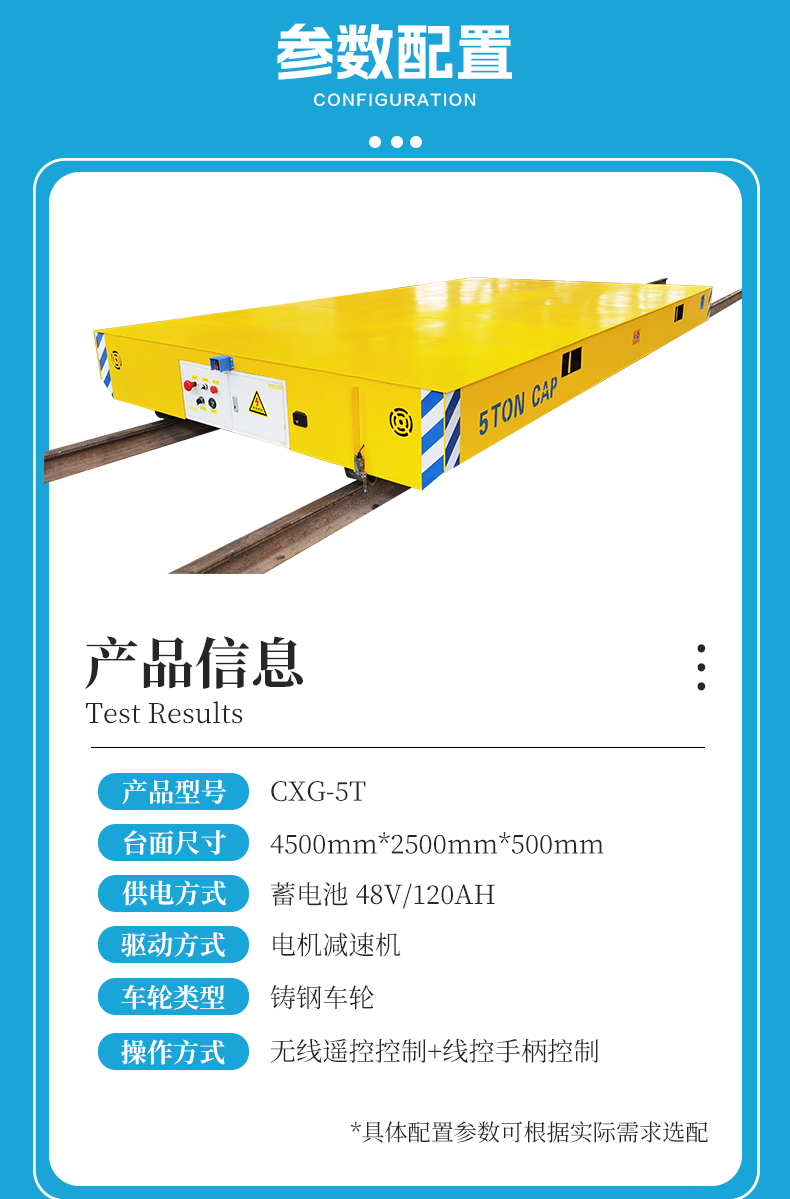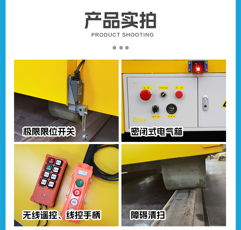 描   述: 遙控式地軌運輸車,整車長4.5米寬2.5米高強鋼箱梁結(jié)構(gòu)承重力強,輕松應(yīng)對5噸重載運輸需求。固定軌道行駛運行平穩(wěn),工業(yè)級無線遙控器操作簡單方便好上手。蓄電池供電滿載運行不低于2小時,可根據(jù)增加電池容量延長續(xù)航時間,搭載高性能電機減速機驅(qū)動系統(tǒng),澎湃動力輸出穩(wěn)定,電機減速機電池箱等重要部件均做防塵罩保護(hù),增加使用壽命。