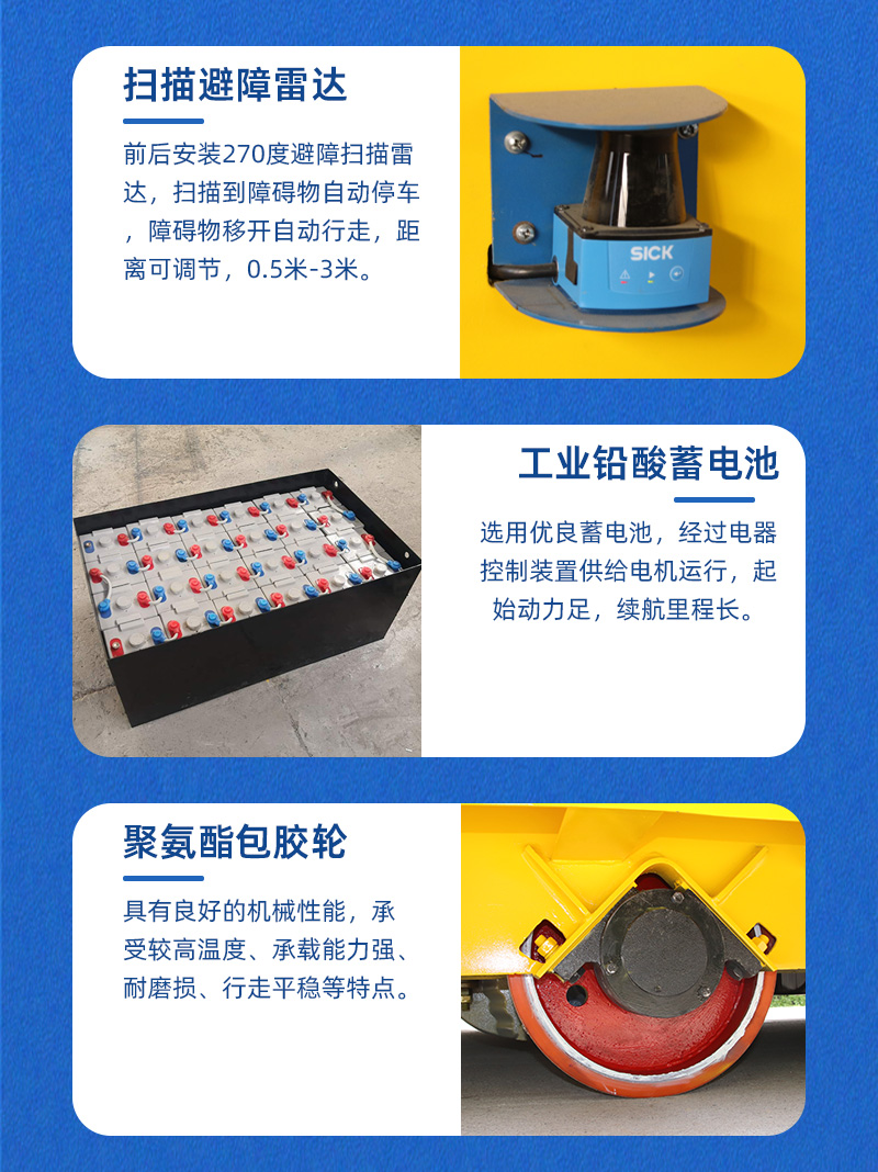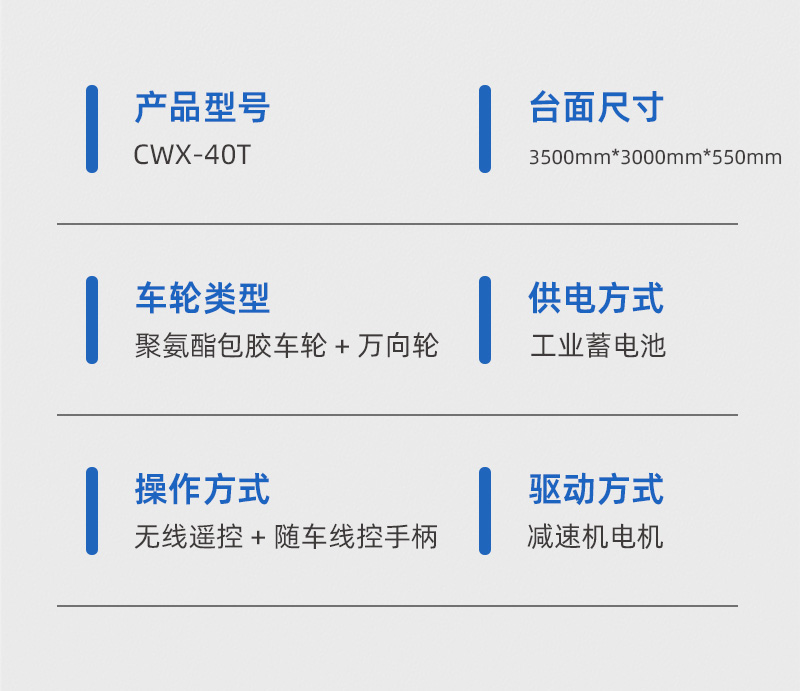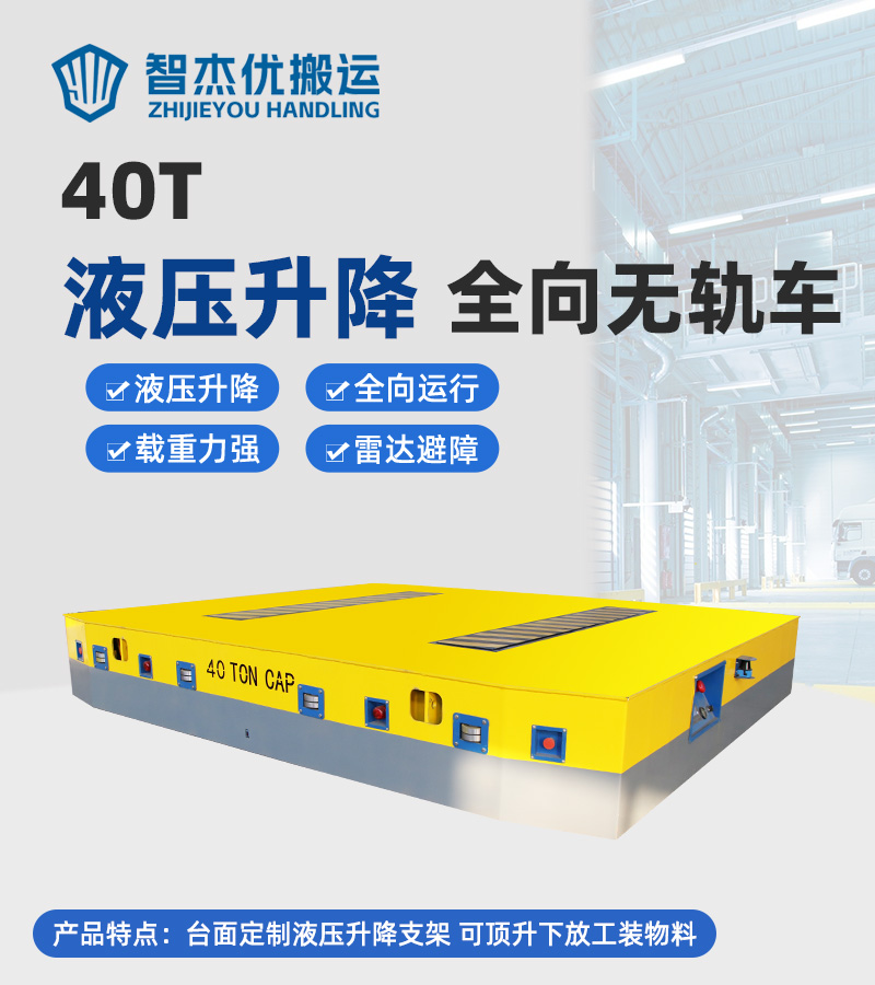 熱線:15517329551 這是一臺液壓升降全向無軌車客戶使用現(xiàn)場,長3.5米寬3米高0.55米額定載重40噸,主要用于車間內(nèi)風(fēng)電設(shè)備部件的轉(zhuǎn)運(yùn)作業(yè)。電機(jī)減速機(jī)驅(qū)動(dòng)平車運(yùn)行,蓄電池供電運(yùn)行路線不受線纜限制,臺面定制液壓升降支架,可頂升工裝架,升降行程200mm,輪系采用聚氨酯包膠輪搭配萬向輪可實(shí)現(xiàn)全向運(yùn)行,車間柱子阻礙下也能靈活調(diào)整方向輕松通過。無線搖桿操作控制平車運(yùn)行及升降,可鉆入工裝下,完成頂升、運(yùn)輸、下放工裝等動(dòng)作,車體四周設(shè)有防撞滑塊,急停開關(guān),前后安裝270度避障雷達(dá),遇障即停,確保全向車安全往返運(yùn)輸作業(yè)!