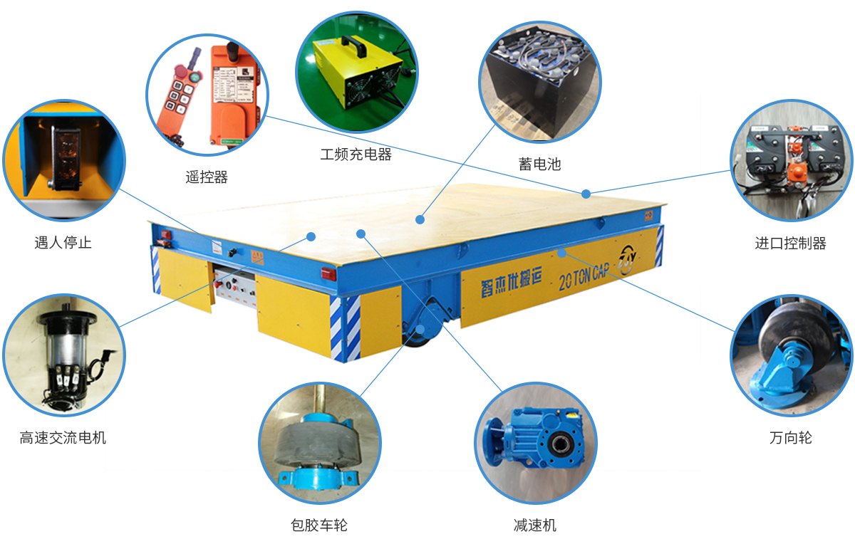 軌道液壓升降電動平車主要組成部分包括:車輪、電機(jī)、控制器、蓄電池、減速機(jī)、液壓站、液壓缸和液壓電控。通過操作手柄來控制電動平車的前進(jìn)、后退和升降功能。操作簡單、使用方便可靠、升降自如??深l繁使用,成本低、效率高。