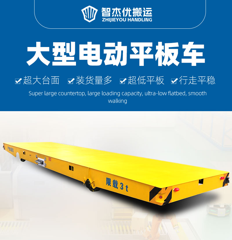 3噸大型電動平板車,超大臺面設計能夠裝較多的貨物,適合于體積大重量小物料搬運,載重3噸車架選用優(yōu)良鋼板拼裝焊接,箱梁結(jié)構(gòu)科學設計保障承載重量數(shù)值,專用牽引蓄電池供電,有效延長減速機使用壽命,車體機械懸掛、平衡結(jié)構(gòu)自動調(diào)節(jié);多種剎車方式可供選擇,聚氨脂包膠輪胎無須充氣更加便捷,耐磨耐撕防刺有效提高工作效率。操作方式可無線搖控也可在線手柄操控;車身裝有聲光報警、激光感應,時刻提醒現(xiàn)場人員避讓,遇到障礙自動停車;儀表實時顯示電量使用情況,電器內(nèi)部多重保護有效避免過載欠壓過流造成電器元件故障。根據(jù)工況條件可定制特殊結(jié)構(gòu)、載重500噸以下的機型。
