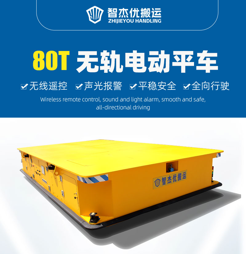 80噸電動搬運平車,超大臺面設(shè)計大載重,可一次搬運大量貨物,適合于大體積大重量物料搬運,電動平車主體用的質(zhì)量好的鋼材組裝焊接,制圖規(guī)范設(shè)計,整體采用箱梁式幾何結(jié)構(gòu)可承載大重量的物料,大容量大密度儲能電池供電,通過電器轉(zhuǎn)換給電動,低壓供電可增加減速機(jī)的使用壽命,電動平車制動有電磁、機(jī)械等剎車方式,鑄鋼輪外包聚氨脂車輪不需要充氣防刺耐磨易保養(yǎng)和維護(hù)。可無線搖控和有線手柄控制電動平車前后行走、左右行走、原地旋轉(zhuǎn)等;電動平車具有聲光報警、激光感應(yīng),遇到障礙自動停車;儀表實時顯示電量使用情況,電器內(nèi)部多重保護(hù)有效避免過載、欠壓、過流等因素造成電器元件故障根據(jù)工況條件可定制特殊結(jié)構(gòu)、載重500噸以下的機(jī)型。